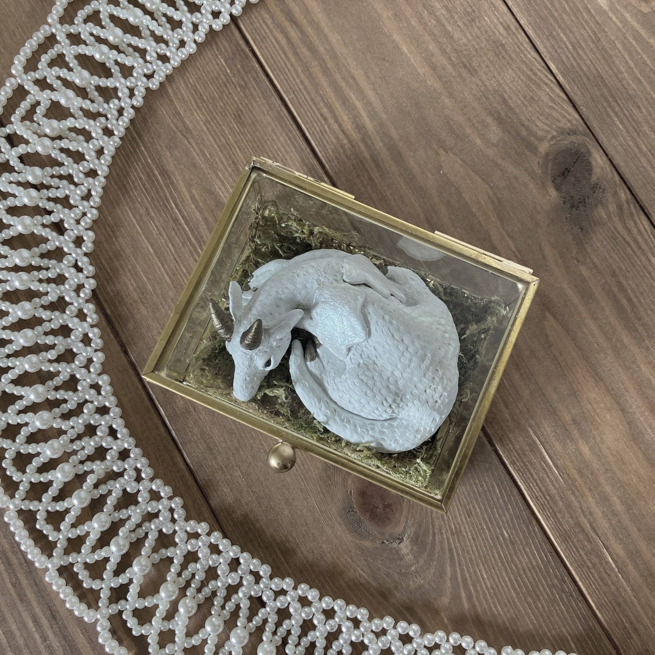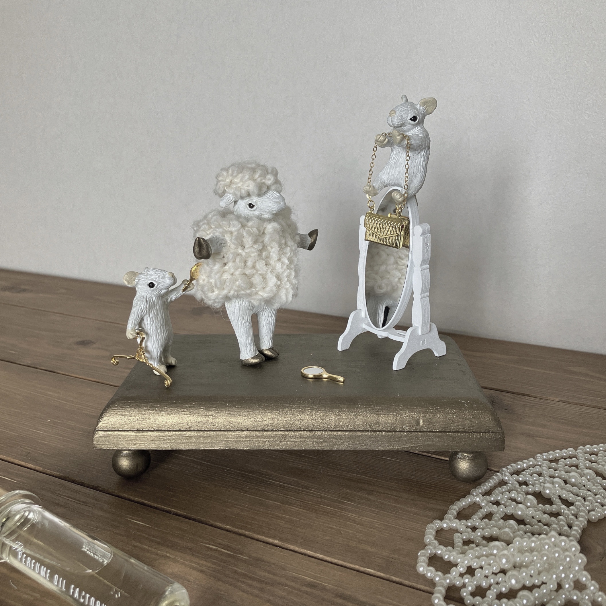 石塑粘土と布で、白を基調とした動物造形作品を製作。