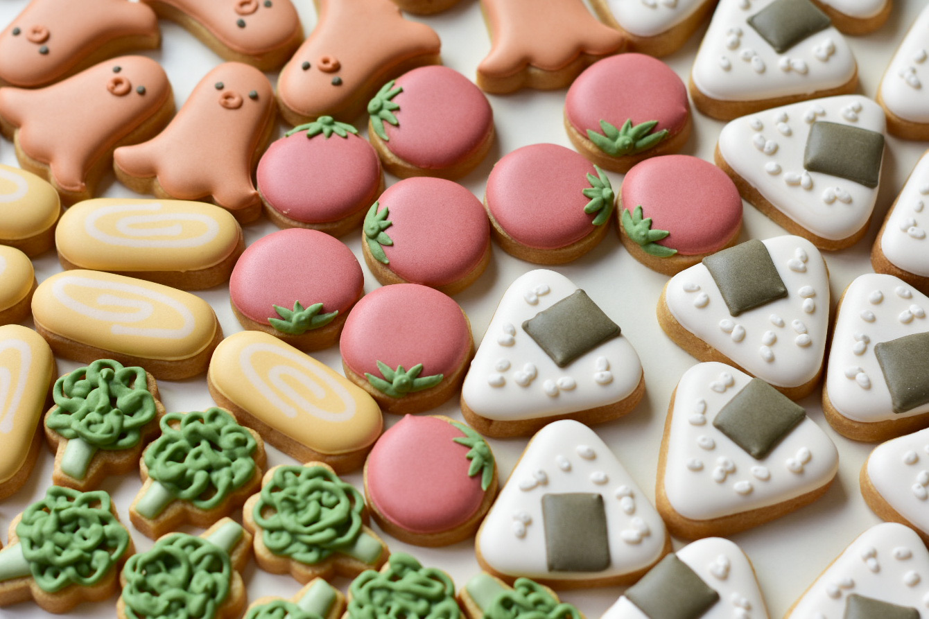 定番の可愛いデザインのアイシングクッキーから、クスッと笑えるモチーフのアイシングクッキーまで、“見て楽しい、食べて美味しい”をモットーに、アイシングクッキーを丁寧に手作りしています。