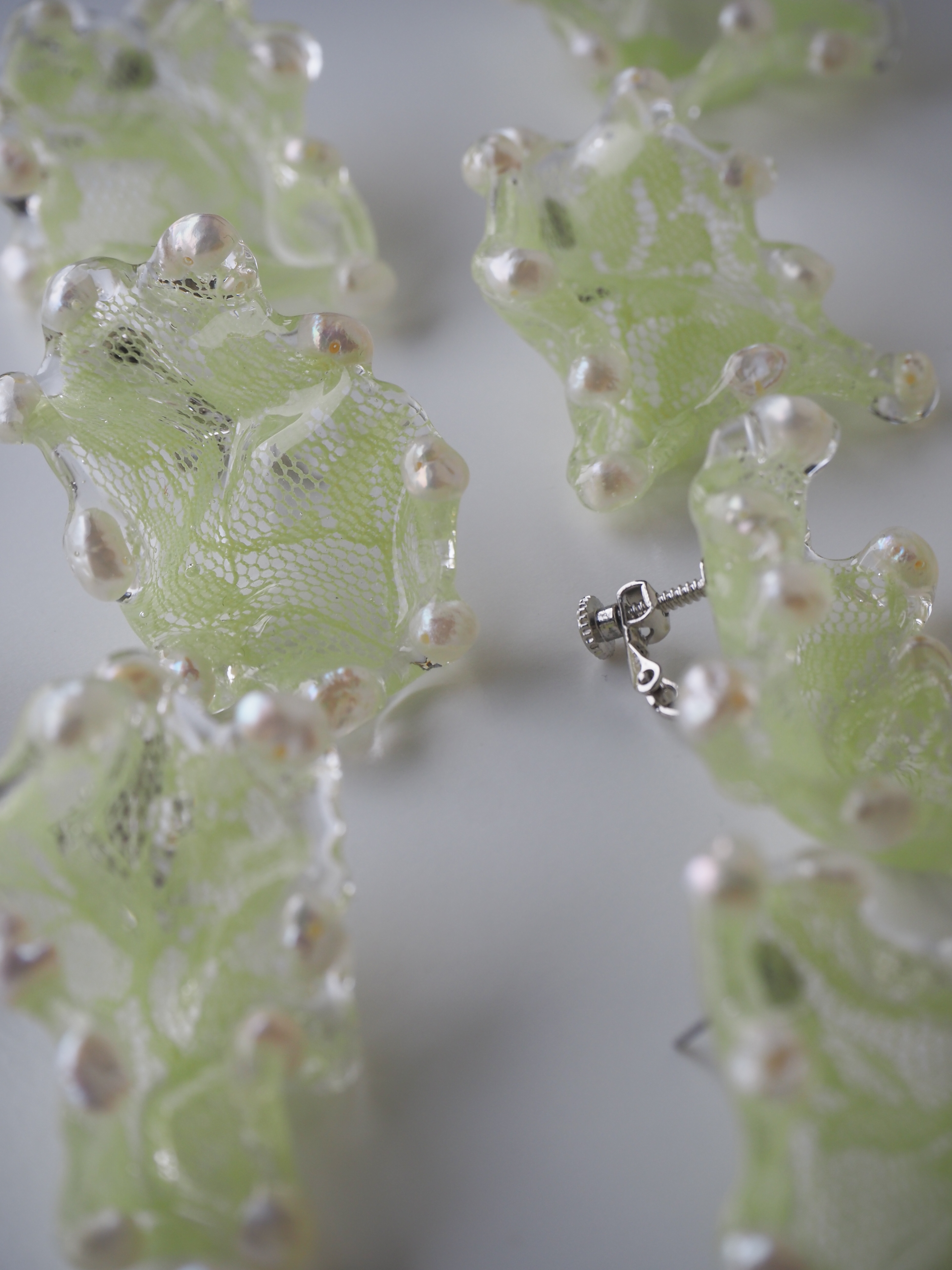 樹脂の中に閉じこめた花や色のゆらめきは、ひとつとして同じものがありません。