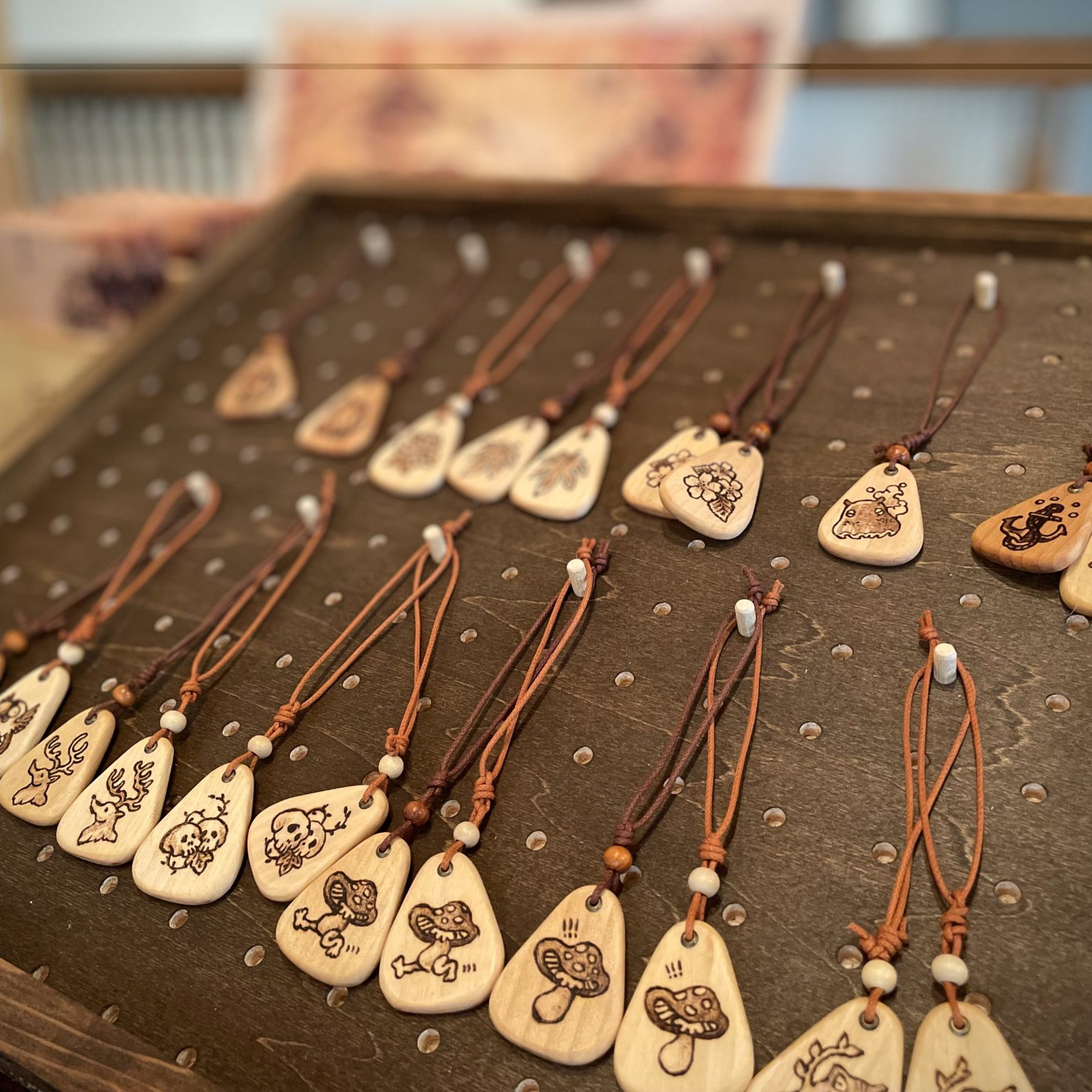 架空の島を舞台にしたファンタジー作品や木製雑貨を、木を焦がして描くウッドバーニングや木口木版画で制作、木材を最大限に使用活用して絵画作品を展開しています。